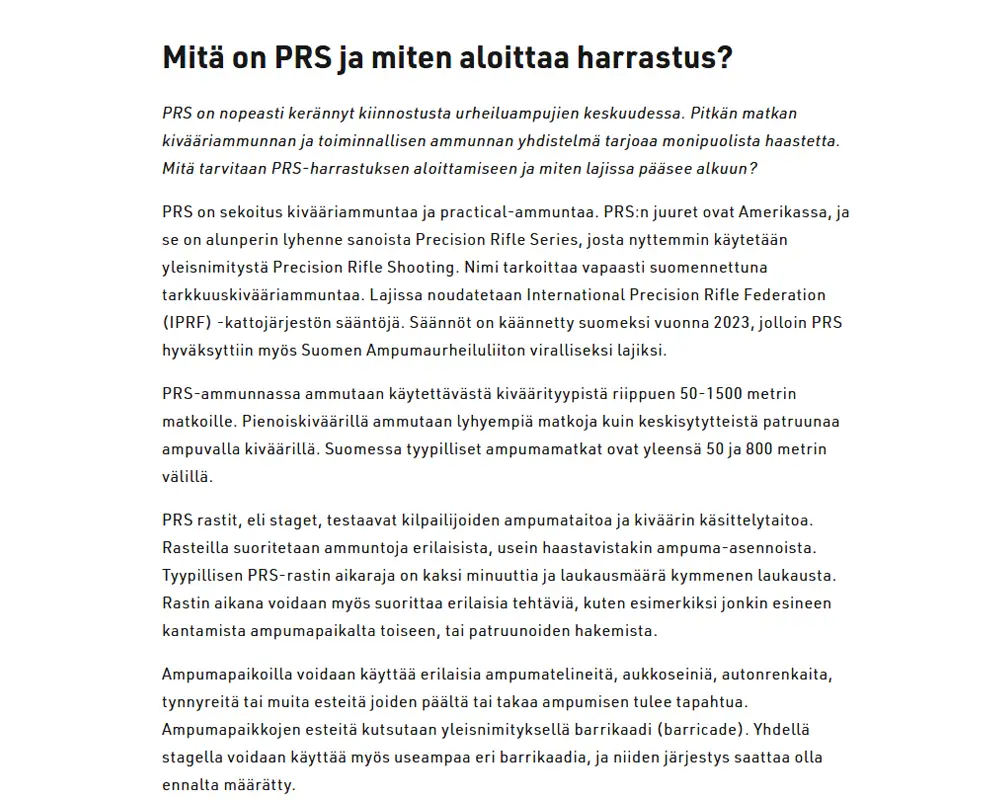 Every word, sentence, and paragraph was written with care. The language of hunting and shooting is a world of its own, combining precision, emotion, and tradition. Years of experience in the field enabled us to write content that not only informs but also appeals, inspires confidence, and sounds genuinely Finnish.